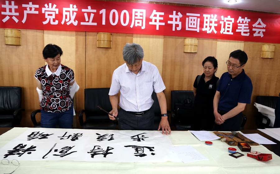 为庆祝中国共产党成立100周年,回顾党的奋斗历程,歌颂美好新时代,助力公司企业文化建设。6月24日,昆明从元化妆品有限公司、烟台市老年书画研究会、烟台市老干部志愿者协会共同举办“庆祝中国共产党成立100周年联谊书画笔会”。本次活动共有18位县处级退休老干部书画家参加。